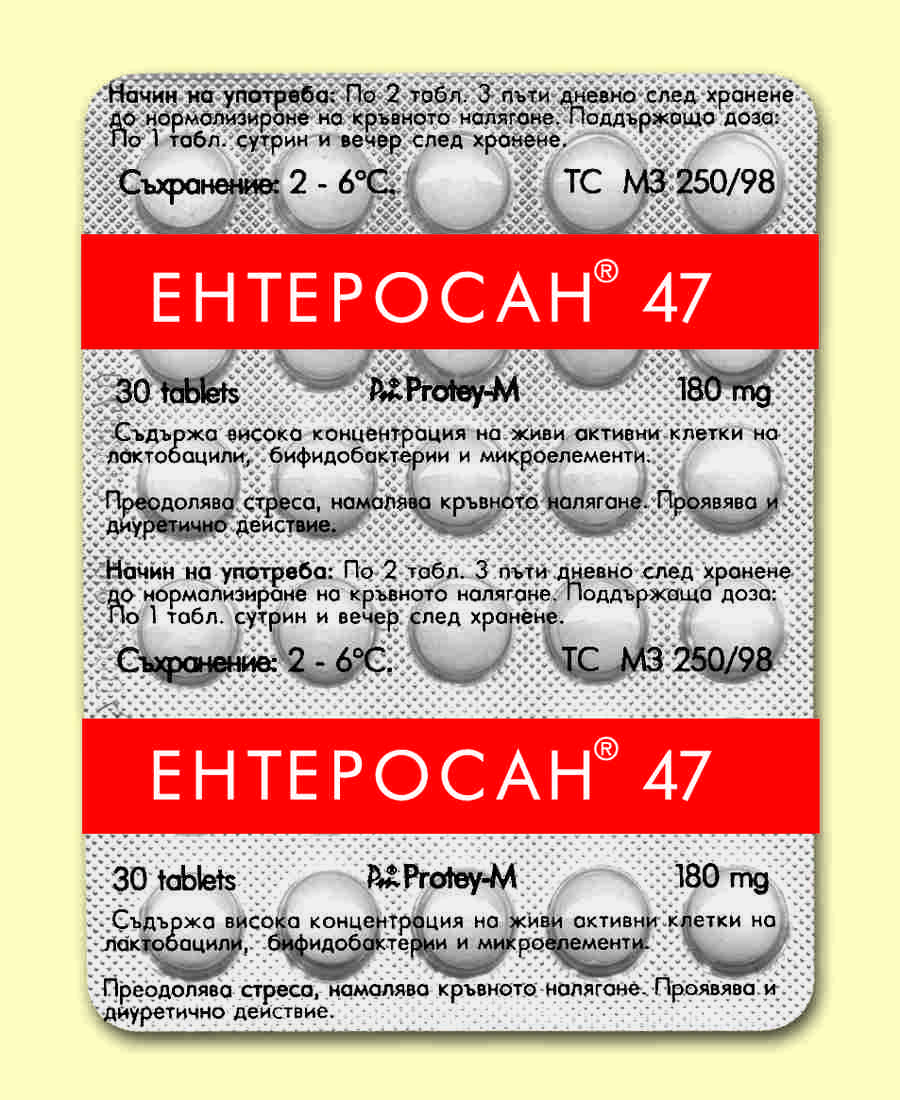 Поддържаща доза: по 1 табл. сутрин и вечер след хранене до 3 месеца.След това се преминава на 2 поддържащи таблетки вечер след хранене. Процесът на нормализиране на кръвното налягане с Ентеросан 47 изисква по-продължително приемане. При високи стойности на кръвното налягане да се приема заедно с другите лекарствени средства.