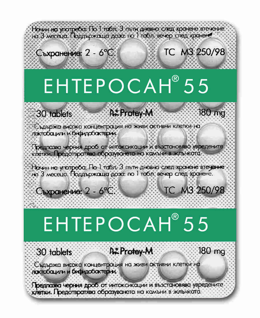 Начало ЕНТЕРОСАН - пробиотици Ентеросан 55 пробиотик – 30 табл.
